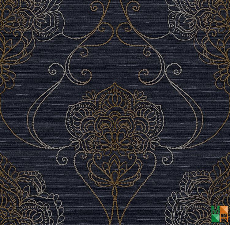 Giấy dán tường màu đen có nhiều họa tiết khác nhau và thường được kết hợp đa dạng với các màu sắc phong phú. Ví dụ như: giấy dán tường màu đen hình lượn sóng trên nền giấy trắng, giấy dán tường hoa văn hình tròn đen trên nền giấy trắng sáng hay giấy hoa văn sọc dọc màu đen trên nền giấy sáng màu.