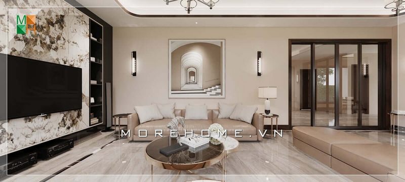 Mang phong cách thiết kế đơn giản mà hiện đại, bàn trà đóng vai trò là điểm nhấn giúp không gian trở nên thân thiện, lịch sự hơn.